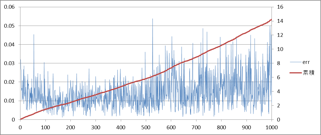 合計の誤差量は14.232936となっていますが、ケースごとの値を見てみます